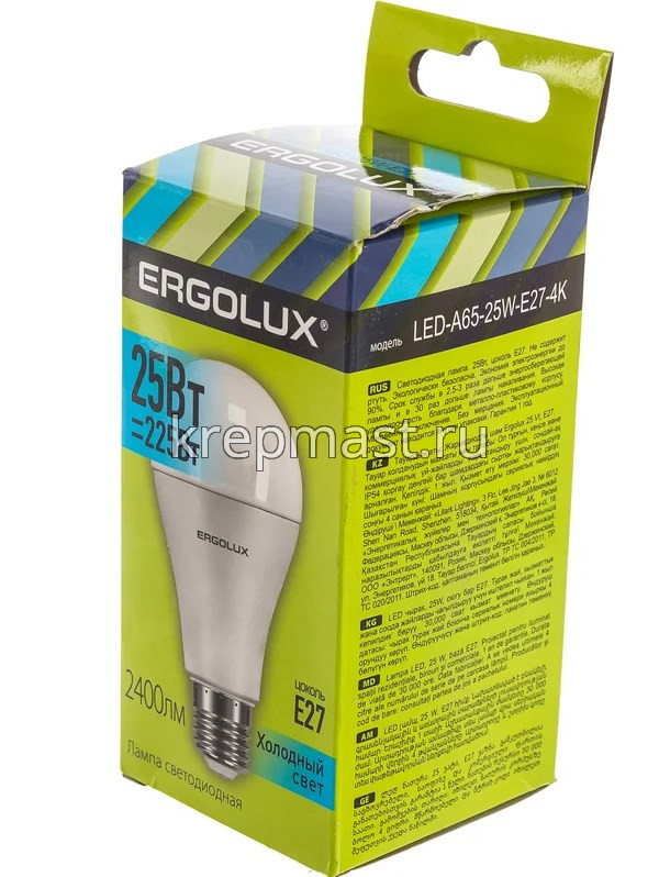 Лампа А65 25Вт Е27 4500К Ergolux