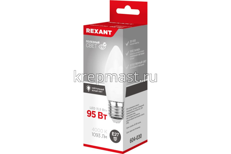 Лампа свеча 11,5Вт Е27 4000K в интернет-магазине «Мастер Крепежа» по цене 153 руб. Более 12 наименований товаров в наличии в категории Лампы светодиод. СВЕЧА. Купить лампа свеча 11,5вт е27 4000k в Йошкар-Оле выгодно Вы можете on-line на нашем сайте, или отправив заявку по почте, а также по телефону или в пункте выдачи компании г. Казань, ул. Татарстан, 9, магазин "Мастер Крепежа". Доставка по Республике Татарстан и другие регионы РФ.