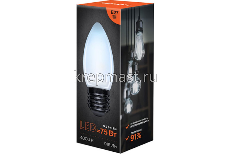 Лампа свеча 9,5Вт Е27 4000K в интернет-магазине «Мастер Крепежа» по цене 134 руб. Более 12 наименований товаров в наличии в категории Лампы светодиод. СВЕЧА. Купить лампа свеча 9,5вт е27 4000k в Йошкар-Оле выгодно Вы можете on-line на нашем сайте, или отправив заявку по почте, а также по телефону или в пункте выдачи компании г. Казань, ул. Татарстан, 9, магазин "Мастер Крепежа". Доставка по Республике Татарстан и другие регионы РФ.