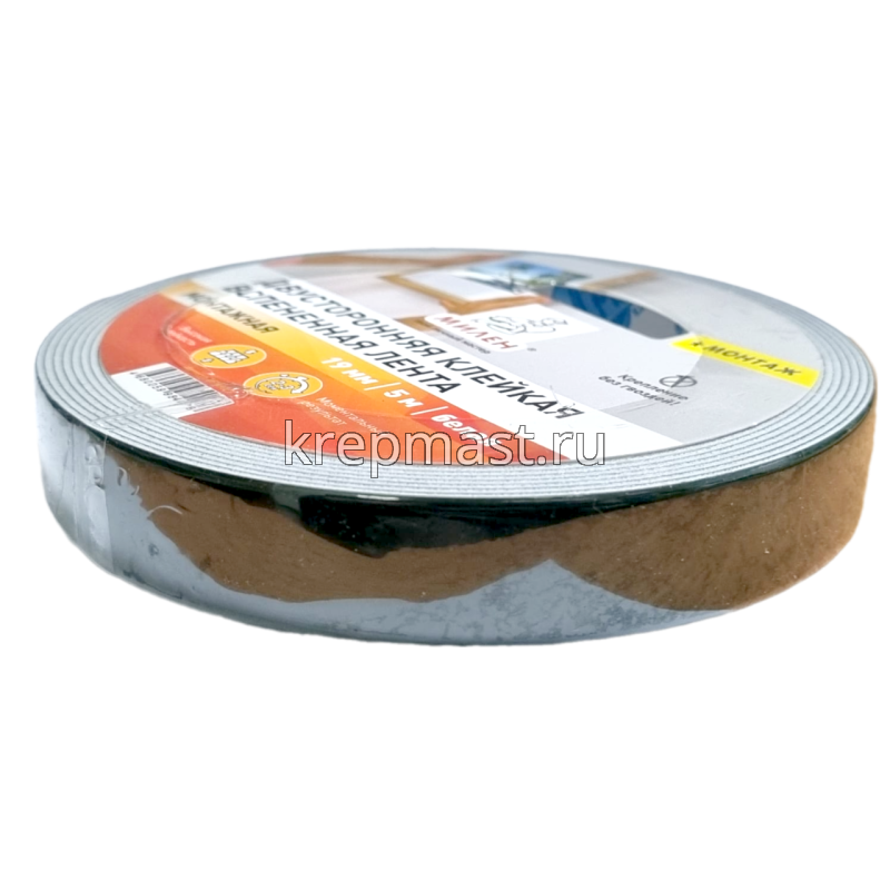 Скотч двусторонний на вспененной основе 19мм х 5м Mилен применяется, как альтернатива клею для крепления различных элементов. Двусторонний скотч ускоряет технологию монтажа, делая его более простым.