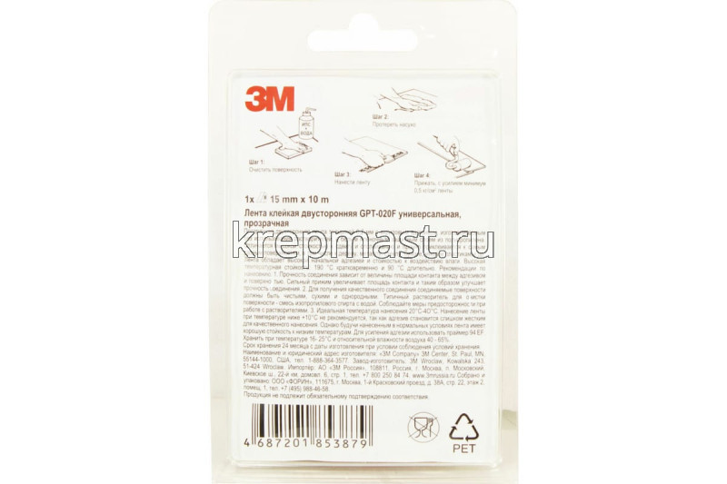 Двусторонняя лента 3М GPT-020F 15 мм х 10000 мм подходит для применения в различных областях, включая производство бытовой техники, промышленного оборудования, транспортных средств и потребительской электроники, а также изготовление вывесок. Используется для склеивания материалов с высокой поверхностной энергией, а также некоторых материалов с низкой поверхностной энергией (нержавеющая сталь, поликарбонат, алюминий, АБС-пластик, полипропилен и стекло).