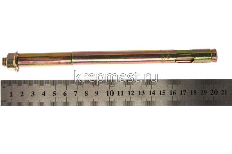 Анкер с гайкой 14 х 200изготовлен из высокоуглеродистой стали со специальным цинковым покрытием и применяется для надежного крепления тяжеловесных конструкций к твердым основаниям из полнотелых материалов.