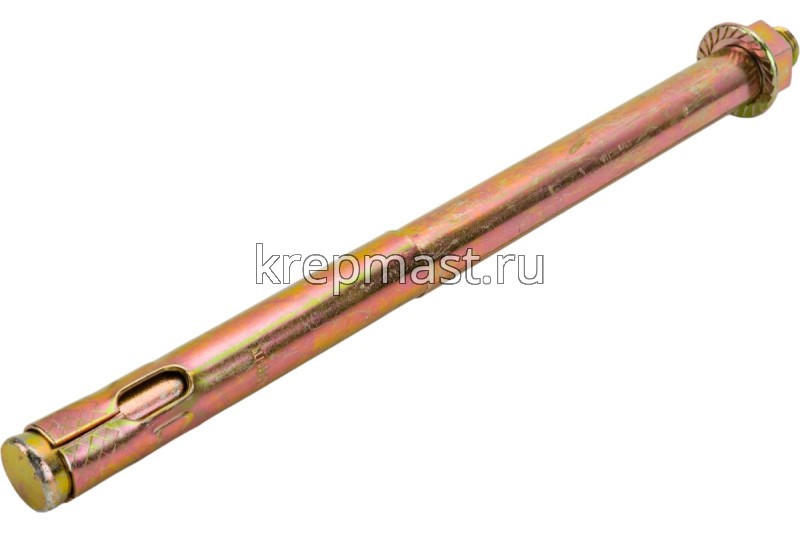 Анкер с гайкой 20 х 300 изготовлен из высокоуглеродистой стали со специальным цинковым покрытием и применяется для надежного крепления тяжеловесных конструкций к твердым основаниям из полнотелых материалов.