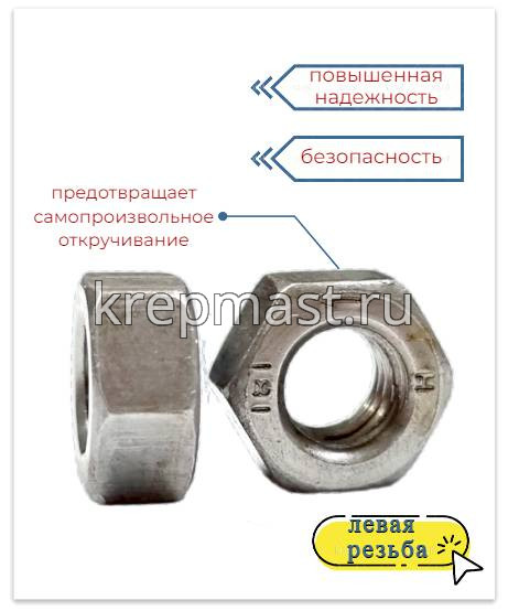 Гайка 6-гр. М 6 (1,0) DIN 934 левая резьба (LH) в Йошкар-Оле