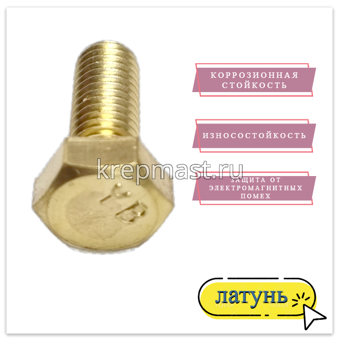 Болт 8х20 DIN 933 латунь в интернет-магазине «Мастер Крепежа» по цене 99 руб. Более 26 наименований товаров в наличии в категории Болты латунные DIN 933. Купить болт 8х20 din 933 латунь в Йошкар-Оле выгодно Вы можете on-line на нашем сайте, или отправив заявку по почте, а также по телефону или в пункте выдачи компании г. Казань, ул. Татарстан, 9, магазин "Мастер Крепежа". Доставка по Республике Татарстан и другие регионы РФ.