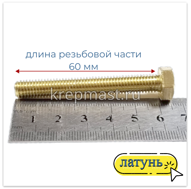 Болт 8х60 DIN 933 латунь в интернет-магазине «Мастер Крепежа» по цене 350 руб. Более 26 наименований товаров в наличии в категории Болты латунные DIN 933. Купить болт 8х60 din 933 латунь в Йошкар-Оле выгодно Вы можете on-line на нашем сайте, или отправив заявку по почте, а также по телефону или в пункте выдачи компании г. Казань, ул. Татарстан, 9, магазин "Мастер Крепежа". Доставка по Республике Татарстан и другие регионы РФ.
