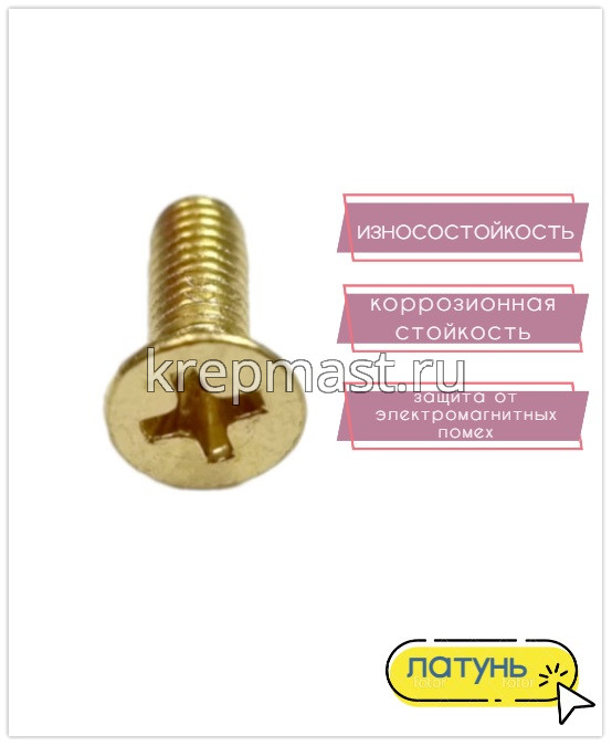 Винт потай 4,0 х12 DIN 965 латунь в интернет-магазине «Мастер Крепежа» по цене 16 руб. Более 9 наименований товаров в наличии в категории Винты латунные потай DIN 965. Купить винт потай 4,0 х12 din 965 латунь в Йошкар-Оле выгодно Вы можете on-line на нашем сайте, или отправив заявку по почте, а также по телефону или в пункте выдачи компании г. Казань, ул. Татарстан, 9, магазин "Мастер Крепежа". Доставка по Республике Татарстан и другие регионы РФ.