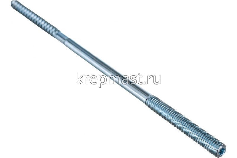 Шпилька сантехническая 8 х 200 используется для крепления различных конструкций при помощи пластикого дюбеля в бетонное, кирпичное основание или в деревянное. С одной стороны у шпильки резьба редкая однозаходная для вкручивания в дерево или пластиковый дюбель. С другой стороны резьба метрическая для закручивания гайки. Сантехническая шпилька чаще всего используется для крепления сантехнических хомутов в деревянную или бетонную стену. Так же шпильки служат для крепления сантехники (унитазов, умывальников) к бетонным или деревянным основаниям. Между двумя резьбами у шпильки есть шестигранник для того, что бы шпильку было удобно закручивать рожковым ключом. Шпильки используются в месте с гайками и шайбами.
