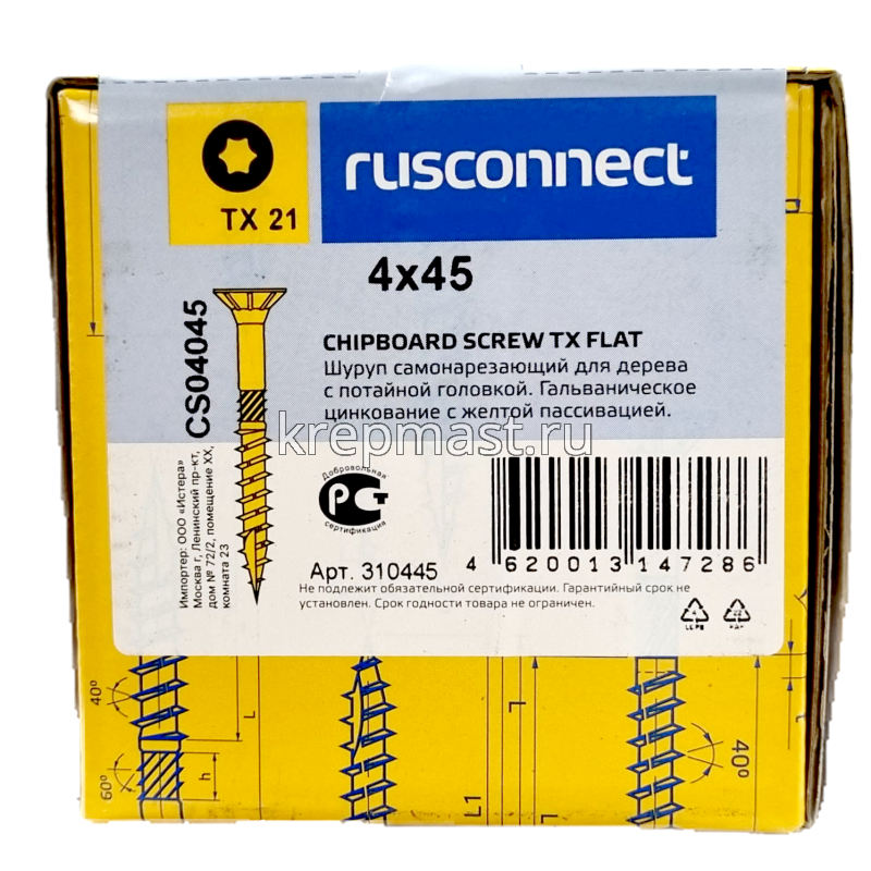 Шуруп с/нарез. для дерева потай 4,0х 45 Тх в интернет-магазине «Мастер Крепежа» по цене 8 руб. Более 43 наименований товаров в наличии в категории Шурупы КОНСТРУКЦИОННЫЕ для дерева. Купить шуруп с/нарез. для дерева потай 4,0х 45 тх в Йошкар-Оле выгодно Вы можете on-line на нашем сайте, или отправив заявку по почте, а также по телефону или в пункте выдачи компании г. Казань, ул. Татарстан, 9, магазин "Мастер Крепежа". Доставка по Республике Татарстан и другие регионы РФ.