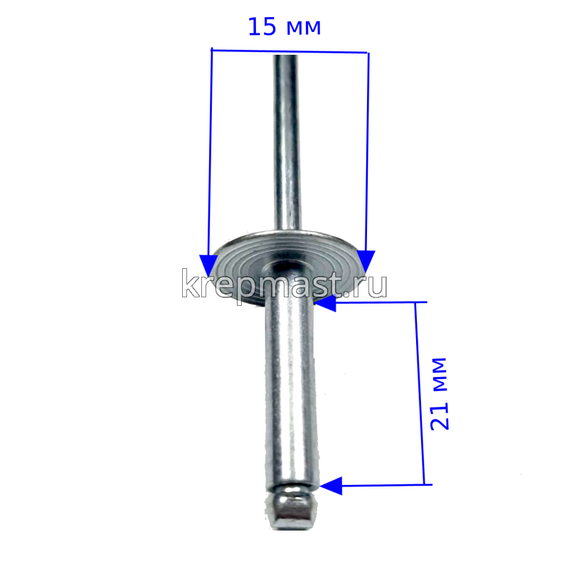 Заклёпка алюминий/сталь 4,8х 21х16 широкий борт - применяется для создания неразъемных соединений листовых металлов в машиностроении, приборостроении и строительных отраслях.