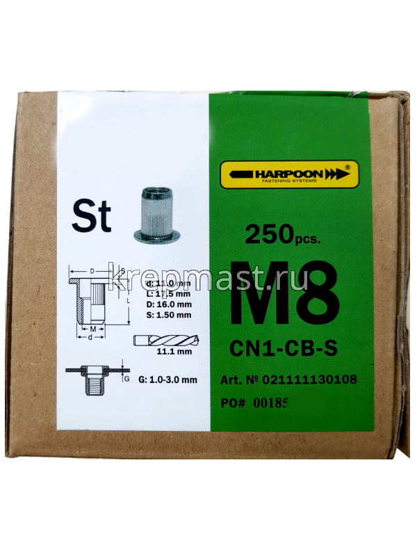 Гайка-заклепка HARPOON М 8 х 17,5мм CN1-CB-S цилиндрический борт, первая длина