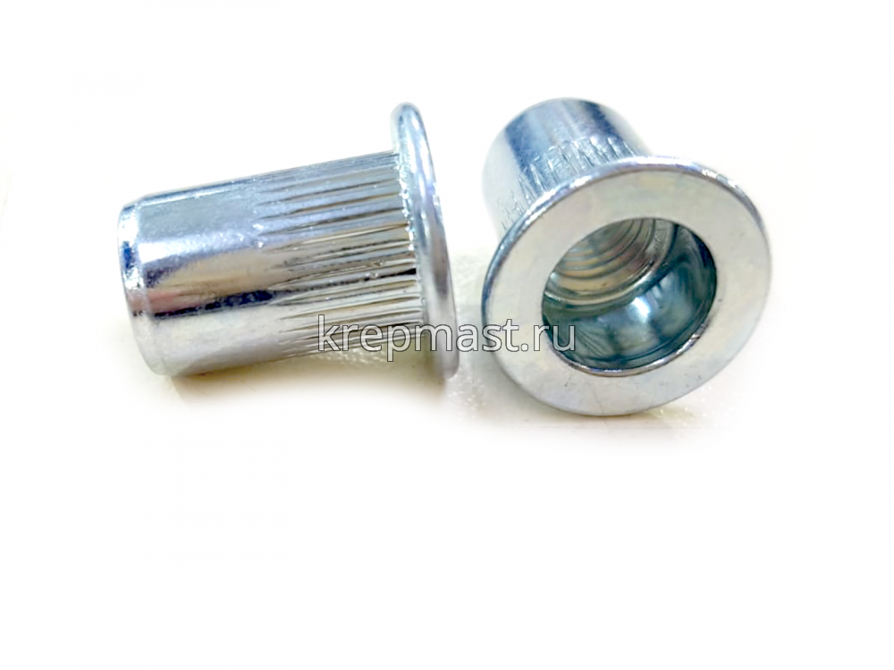 Клепки резьбовые М8 изготавливают из прочной и устойчивой к воздействию коррозии оцинкованной стали.