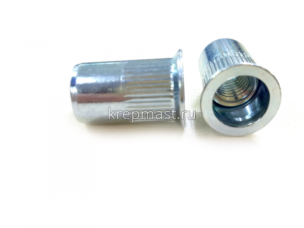 Клепки резьбовые потайные М8 изготавливают из прочной и устойчивой к воздействию коррозии оцинкованной стали.