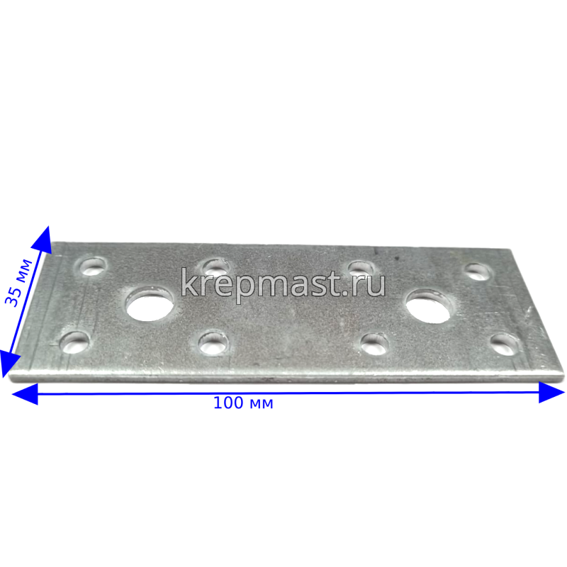 Крепежная пластина LP1 100x35x2,5мм применяется для соединения и упрочнения конструкций при помощи нескольких дюбелей, анкеров, саморезов.