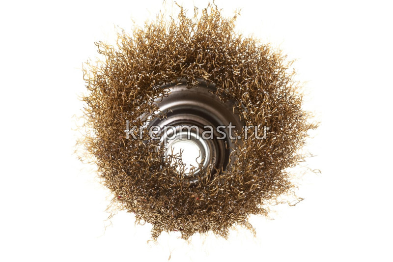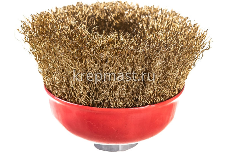 Корщетка-чашка USP 75 мм М14 латунированная проволока используется для шлифовальных и обдирочных работ в угловых шлифовальных машинах. Оснастка крепится к инструменту при помощи гайки М14. Рабочая поверхность щетки — волнистая латунированная проволока.