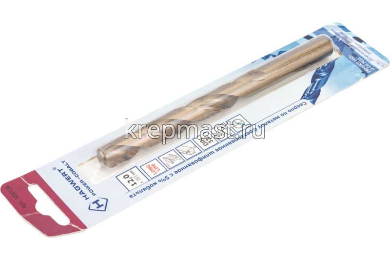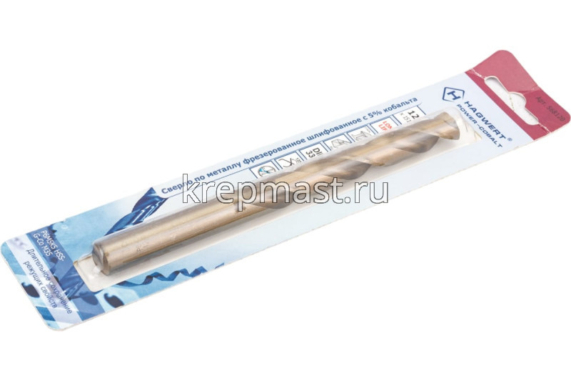 Кобальтовое сверло по металлу М12.0 x151мм Hagwert изготовлено из быстрорежущей стали HSS с 5% добавкой кобальта, что обуславливает высокую прочность и долгий срок службы оснастки. Сверло шлифованное и имеет цилиндрический хвостовик. Подходит для сверления труднообрабатываемых и нержавеющих сталей, цветных металлов. Угол заточки при вершине — 135 градусов, а класс точности — А1.