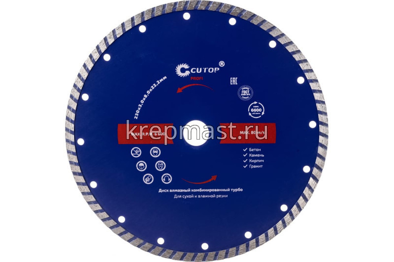 Диск алмазный 230 х 22 турбо в интернет-магазине «Мастер Крепежа» по цене 1591 руб. Более 9 наименований товаров в наличии в категории Диск алмазный турбо /для сухой и мокрой резки. Купить диск алмазный 230 х 22 турбо в Йошкар-Оле выгодно Вы можете on-line на нашем сайте, или отправив заявку по почте, а также по телефону или в пункте выдачи компании г. Казань, ул. Татарстан, 9, магазин "Мастер Крепежа". Доставка по Республике Татарстан и другие регионы РФ.