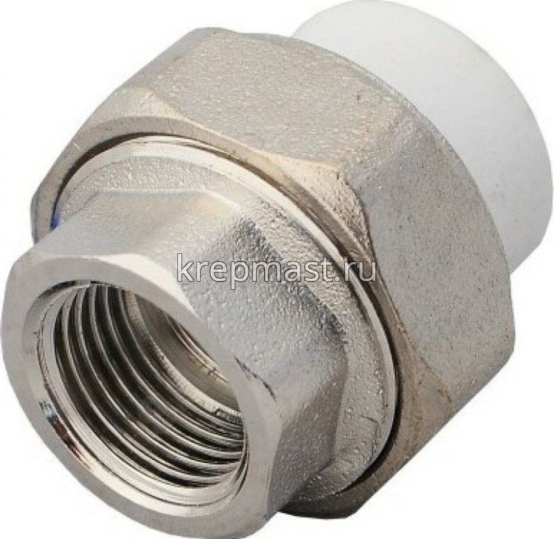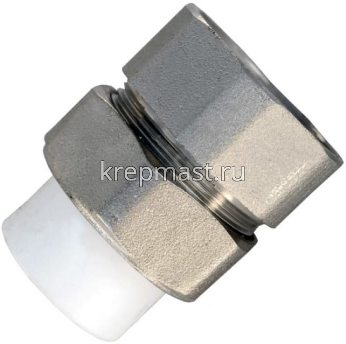 Комбинированная разъемная муфта (американка) ВР D 25- 3/4 п/п - разъемная муфта состоит из двух элементов, один из которых приваривается к полипропиленовой трубе посредством раструбной сварки, другой - соединяется с оборудованием или арматурой при помощи трубной резьбы.