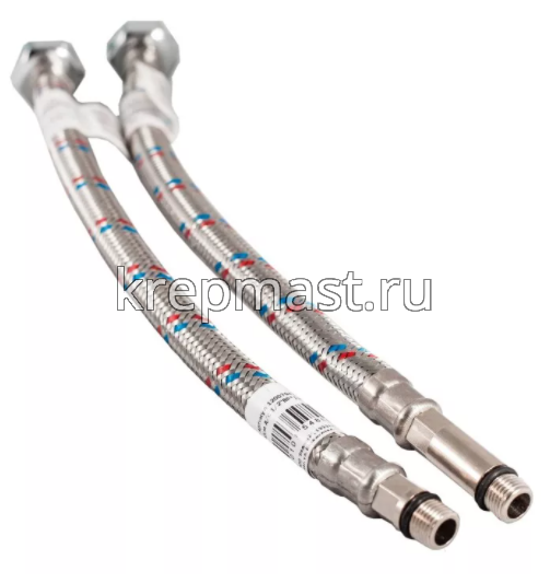 Комплект из двух гибких подводок в оплетке из нержавеющей стали 1/2"х 0,3м в ПВХ оплетке предназначен для подключения смесителя к трубопроводам системы горячего и холодного водоснабжения.